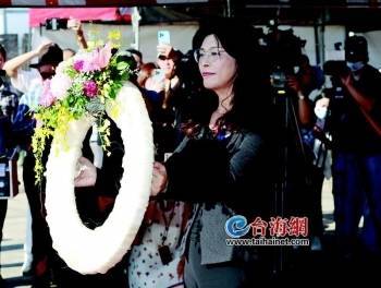 中国国民党主席郑丽文参加秋祭仪式,并向遇难者敬献了花圈。(台媒图)